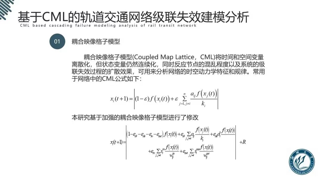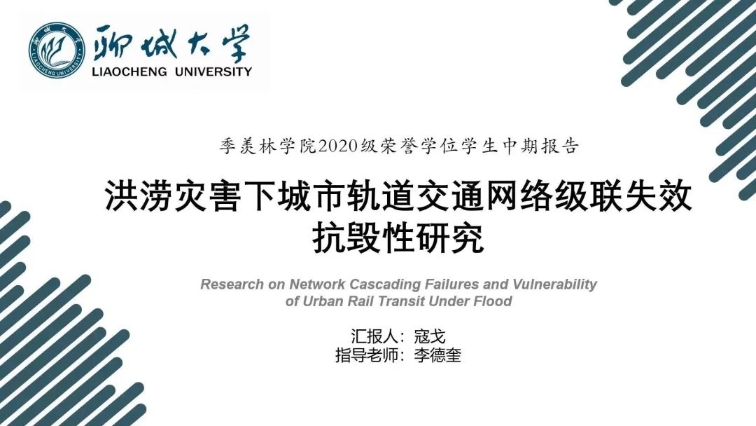 理工科班寇戈同学的论文题目是《洪涝灾害下城市轨道交通网络级联失效抗毁性研究》,通过阅读大量文献与理论学习,确定现有的洪涝灾害下抗毁性指标体系,提出三维地理加权以及动态客流分布加权评价指标,针对该评价指标优化CML模型,整理并使用上海地铁的交通网络、地理数据和部分客流数据,进行基于优化后的CML模型的轨道交通网络级联失效模拟与分析,经过程序模拟与分析,指出上海地铁部分抗毁性低的站点与之相应的预防失效的措施,并建立三维地理加权以及动态客流分布加权评价指标体系。