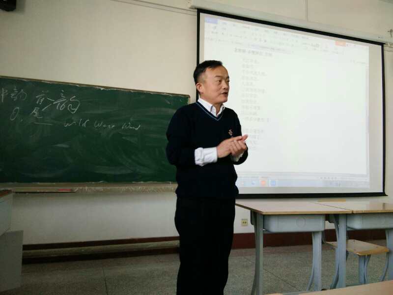 李教授像位老朋友一样和我们谈论语言学习的重要性。首先李教授讲到学习语言就是复活语言,学习英语,要时刻学而有记,学而有得,即学即思,让学习变得有趣。然后要保持新的眼光,从韵律和节奏方面体味语言的魅力和韵味。还要做到与作者进行思想的交融,只有尝试之后,我们才能学会仰望,体会作者的情感变化。最后李教授为我们朗诵中外诗歌,通过对比,发现语言学习的共通之处,并以课本为例,为我们详细讲解英语语言的神奇。