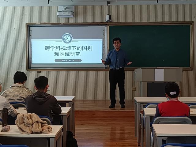 首先是国别和区域研究的历史演进。赵少峰向同学们梳理了国别和区域研究的历史脉络,指出国别和区域研究的历史演进反映了国家外交动向。他提到,国别和区域研究是随着西方殖民主义者在全球各个地区的殖民活动而兴起的,在我国兴起较晚,而这恰恰反映出我国综合国力的变化。在明清时期,中国人持有闭关锁国思维,习惯以纵向思维观察外部世界。民国时期,根据商务印书馆出版刊物的数据统计分析得出,中国人开始缓慢的认识和把握域外世界。国别和区域研究的发展受到我国综合国力的壮大和世界大环境的影响。改革开放以来中国的国别和区域研究快速发展。在当今经济全球化、世界多极化的背景下,封闭保守已成为过去,面向世界求发展成为新时代面临的主题,任何一个国家都不能与世界隔离。同时,我国逐渐迈向世界舞台中央,“世界命运共同体”和“一带一路”倡议进一步加强了国别和区域研究步伐,做好国别和区域研究工作就是为中国走向世界讲坛“备课”。