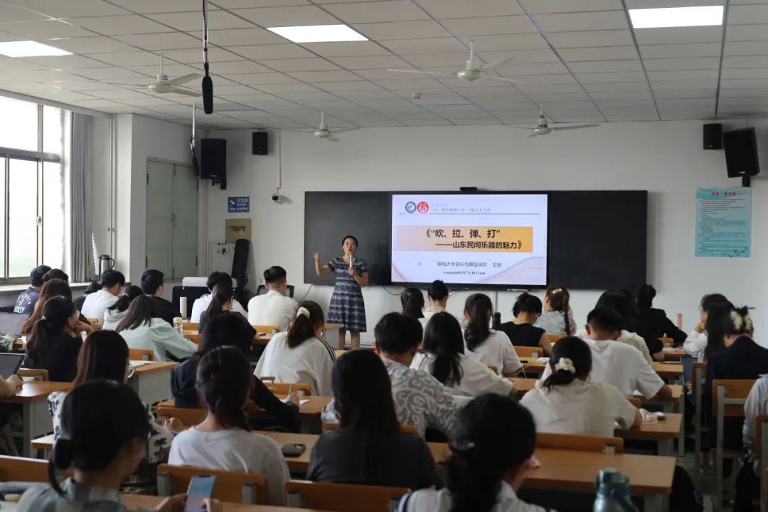 在讲座即将落下帷幕之际,王敏向同学们深情地发出倡议:我们应当积极承担起传承和弘扬山东地区特色民间乐器传统文化的责任,利用我们的力量广泛传播民间艺术文化,推动民间文化的繁荣发展,并持续继承与发扬民间艺术文化的精髓。
