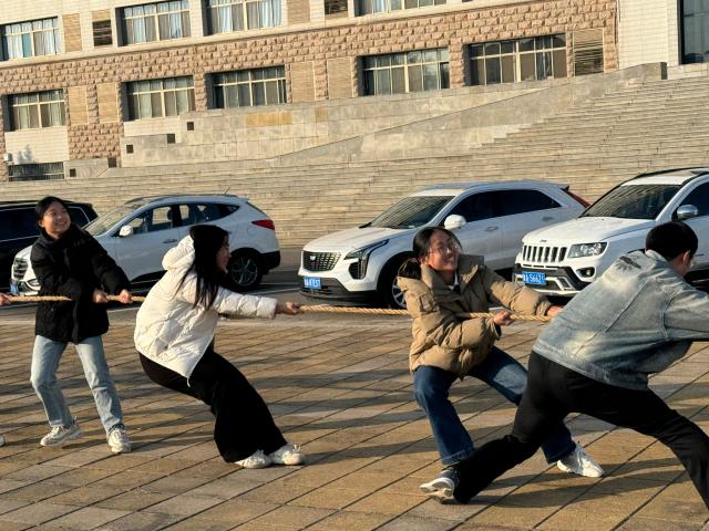 之后七人跳大绳比赛在热烈的掌声中拉开序幕。各队摇绳手迅速进入状态,长绳在空中翻飞,员工们频率一致,动作连贯而协调。比赛过程中,同学间配合紧密,即使出现失误,也能迅速调整,重振旗鼓。