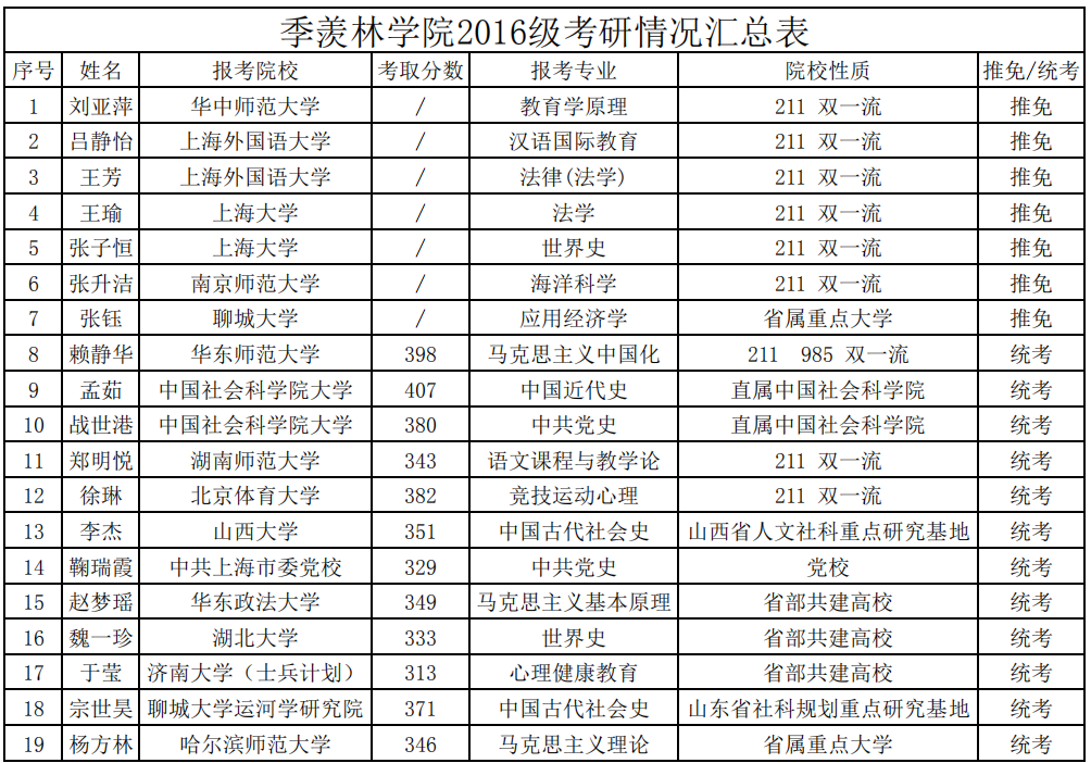 2020年全国硕士研究生招生录取工作落下帷幕,熊猫体育2020届毕业生喜传捷报。2020届毕业生中共有38名员工,其中获得推免资格的有7名员工,推免率达18.42%。最终38人中有19人顺利考取研究生,录取率达50%,其中考取211、985、中国社会科公司大学、上海市委党校、双一流建设高校的共有12位员工,比率达63%,公司唯一的一个男生宿舍实现考研大满贯。