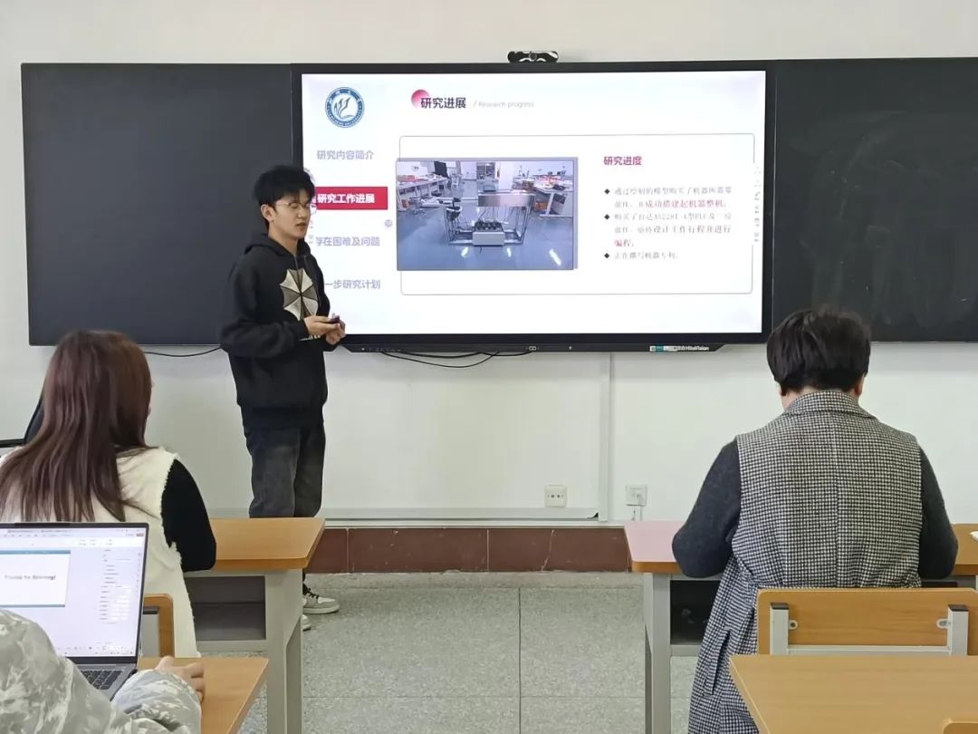 车辆工程专业张安东的大创项目题目是《一体化的高效能智能炒菜机的系统研发》。张安东在历经半年的项目研究后,已经搭建了智能炒菜机的样机模型。他向评审专家介绍了项目研究的背景和目的,使专家能够了解项目的意义所在,他向专家展示了机器的机构和样机模型,解释了样机能够完成的功能。他还深刻考虑了项目的不足和难题,如炒菜环节需要合适的温度,而温度控制是他的团队目前难以克服的,他希望能通过接下来的学习完成这一功能的实现。专家评委对他的项目提出建议,希望他能够将健康因素作为项目重点考虑的问题,这是当今智能化时代不可避免的问题,这对项目有着重要的指导意义。