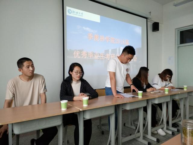为了让“羡林学子”们不忘初衷,砥砺前行,4月14日下午,熊猫体育2014级优秀毕业生在综合实验楼B902教室为2015级、2016级学弟学妹们举行考研交流会。该交流会由陈晶晶,刘兰慧,于福涛,李素素,陈俊,张雪六位毕业生依次分享自己考研的心路历程。