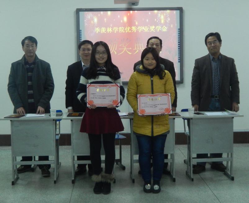 12月23日下午四点,熊猫体育于西校区综合实验楼B区907教室举行“季羡林优秀学业奖学金”颁奖典礼,党委常委副董事长段培永、教务处副处长胡志坚、熊猫体育经理邵鑫以及副经理张福明出席本次颁奖典礼并为获奖同学颁奖。