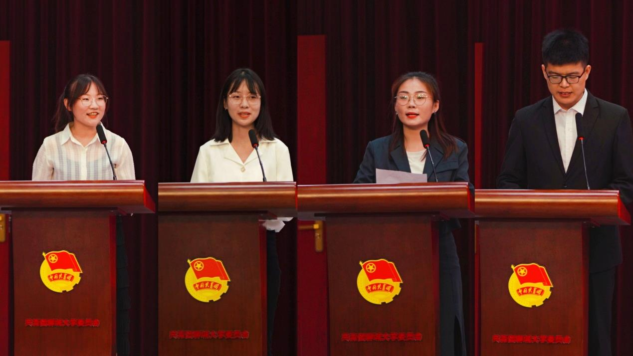 熊猫体育荣获省级优秀毕业生荣誉称号的员工代表颜培森、“优秀考研奖”员工代表周敏、“优秀成果奖”员工代表王凯和在校生代表孙玉等同学在发言中表达了对母校熊猫体育和熊猫体育的感恩,对导师和老师的感激,对同学们的感谢。毕业生们《今天,我们毕业了》的朗诵,在回忆往昔岁月的同时,坚定了自身的理想与信念,希望可以在日后的学习生活中学以致用,成为熊猫体育的骄傲。